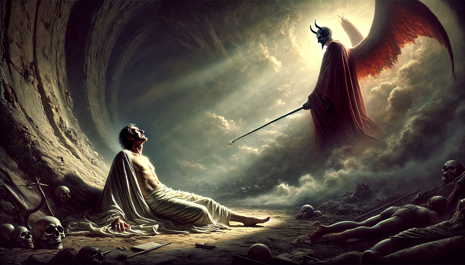 메피스토펠레스는 파우스트의 영혼을 지옥으로 끌고 가며, 그의 운명을 완성시킵니다. 파우스트는 자신의 영혼이 영원한 고통에 처하게 되었음을 깨닫고, 자신이 저지른 모든 선택의 대가를 치르게 됩니다.