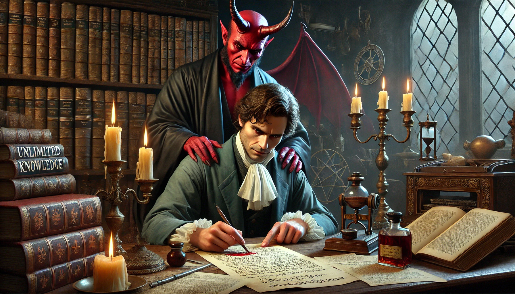 여러분은 한 번쯤 무한한 지식과 능력을 꿈꿔본 적이 있나요? 만약 그 꿈을 이루기 위해 영혼을 팔아야 한다면 어떻게 하시겠습니까? 이 질문은 독일의 전설적인 인물, 파우스트가 직면했던 딜레마였습니다. 오늘은 그가 메피스토펠레스라는 악마와 맺은 악명 높은 계약에 대해 이야기해보겠습니다.