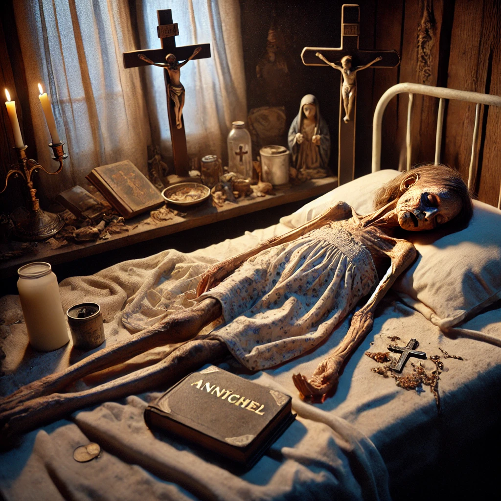 1976년 7월 1일, 앤넬리즈 미첼은 23세의 나이로 사망했습니다. 그녀의 사인은 영양실조와 탈수로 인한 것으로 밝혀졌으며, 사망 당시 그녀의 몸무게는 겨우 30kg에 불과했습니다. 앤넬리즈의 사망은 큰 충격을 주었고, 부모와 구마 의식을 집행한 두 명의 사제는 과실치사 혐의로 기소되었습니다.