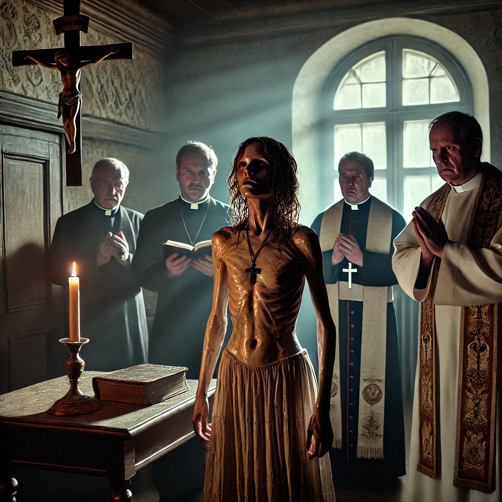 앤넬리즈는 점점 더 음식과 물을 거부하게 되었고, 하루 종일 기도와 금식을 반복했습니다. 그녀의 몸은 급격히 쇠약해져 갔고, 의식 중에 발작을 일으키며 자신을 제어할 수 없는 상태에 이르렀습니다.