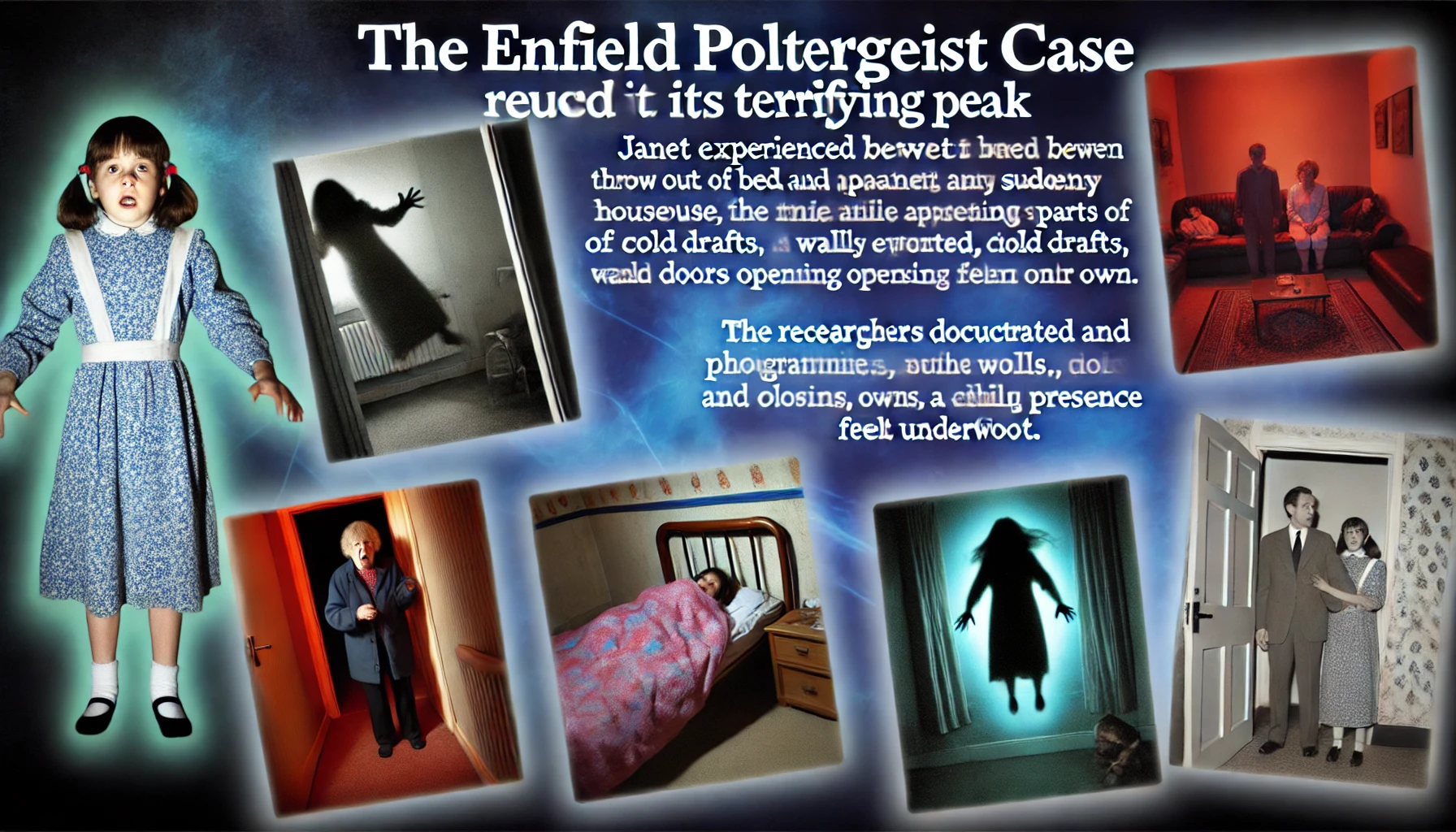 사건은 점점 더 심각해졌습니다. 자넷은 침대에서 떨어지거나, 집안의 여러 곳에서 갑자기 나타나는 경험을 했습니다. 가족들은 이상한 냄새와 차가운 기운을 느꼈으며, 집 안에서 끊임없이 들리는 괴상한 소음에 시달렸습니다. 연구자들은 이 모든 현상들을 기록하고 사진으로 남겼습니다. 특히 자넷이 공중에 떠오르는 사진은 큰 충격을 주었습니다. 집 안에서는 계속해서 이상한 일이 벌어졌고, 가족들은 극도의 스트레스와 공포에 시달렸습니다. 벽에서 들리는 기괴한 속삭임, 저절로 열리고 닫히는 문, 발밑에서 울리는 차가운 기운 등 모든 것이 가족을 집어삼킬 듯이 덮쳐왔습니다.