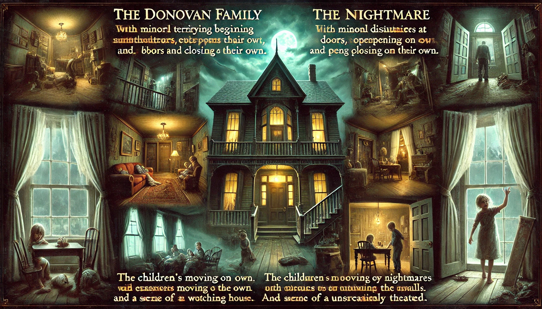 1970년대 초, 도노반 가족은 평화롭고 조용한 지역에서 새로운 시작을 꿈꾸며 한 오래된 집으로 이사했습니다. 그러나 그들의 꿈은 곧 악몽으로 바뀌었습니다. 이 집은 단순한 주거 공간이 아니라, 그들을 공포의 세계로 끌어들이는 악몽의 장소였습니다. 집은 고요하지만 무거운 공기를 내뿜었고, 가족들은 이사 초기부터 알 수 없는 불안감에 휩싸였습니다.